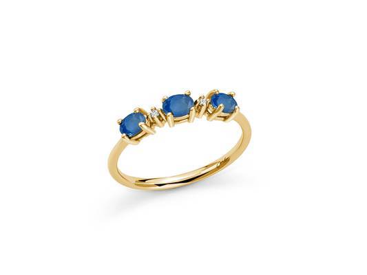 Anello Trilogy in oro bianco 375 (9KT) da Donna valorizzato da tre zaffiri blu naturali taglio ovale per una caratura complessiva di 0,69 ct ed impreziosito con due luminosi diamanti taglio brillante per una caratura complessiva di 0,0112 ct