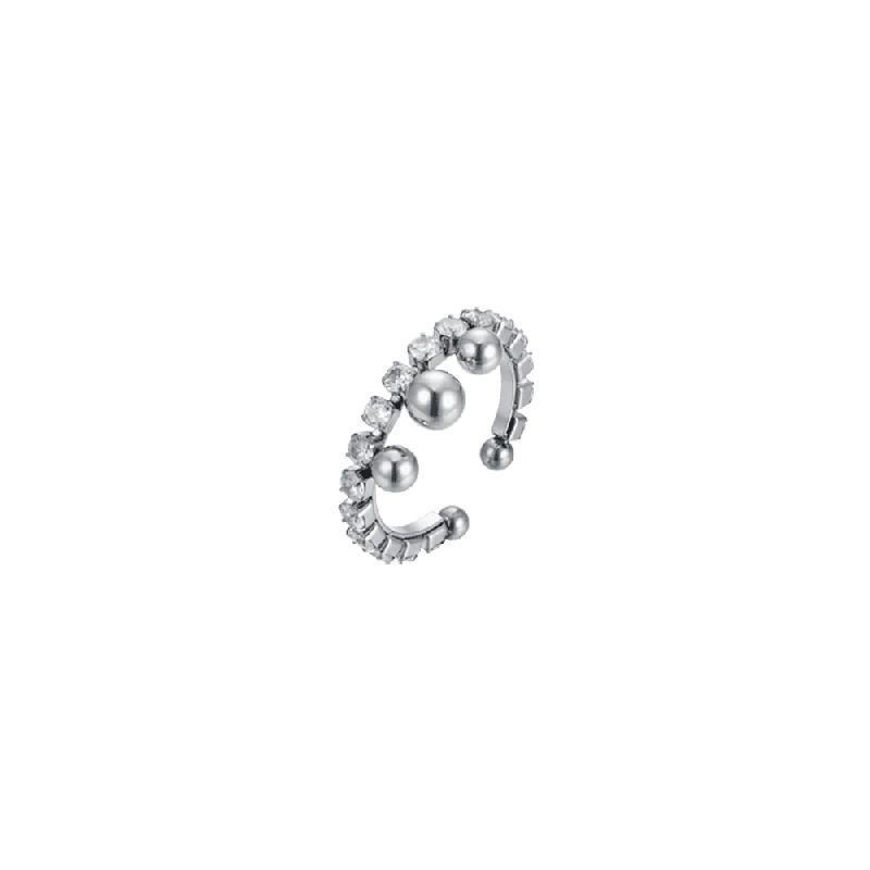 ANELLO DONNA IN ACCIAIO CON CRISTALLI BIANCHI E SFERE