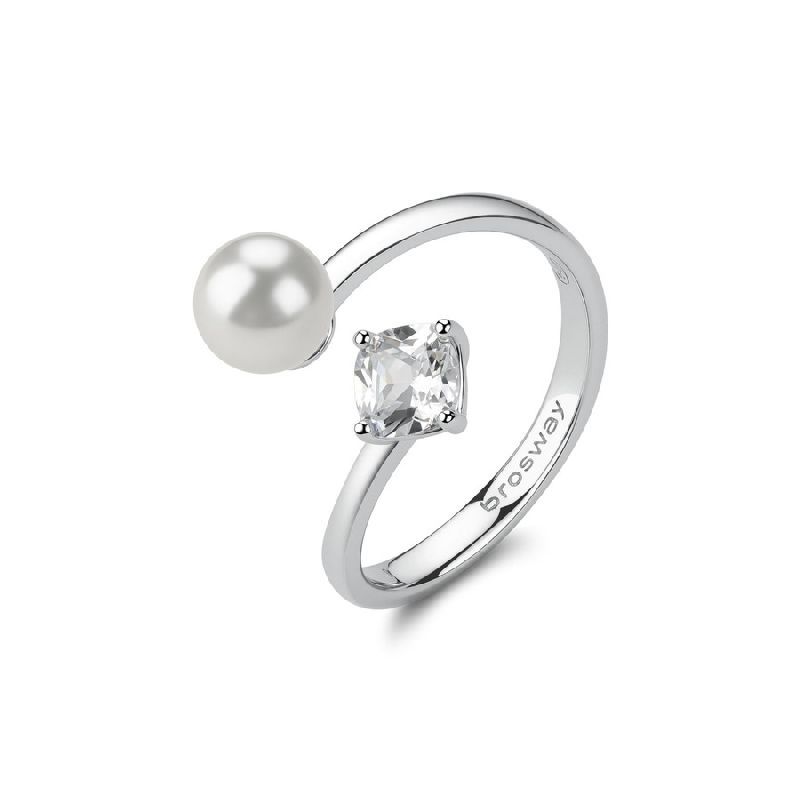 Anello FANCY in argento 925/1000 rodiato, con perla e cubic zirconia white