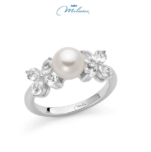 Anello Miluna in argento, COLLEZIONE Anastasia con perla Oriente e topazi taglio goccia