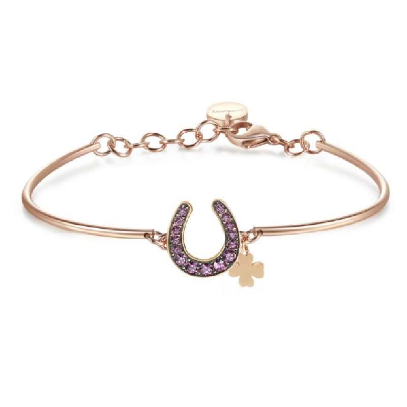 Bracciale CHAKRA in acciaio e pvd oro rosa con ferro di cavallo