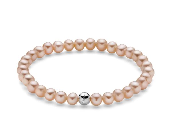 Bracciale di perle vere Oriente pesca con elastico e dettaglio in argento 925. Perfetto per compleanno e laurea, un accessorio per chi ama esprimere la propria eleganza con classe in ogni occasione.