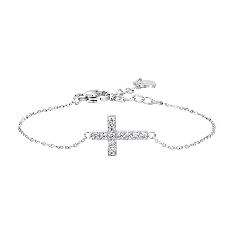 BRACCIALE DONNA IN ACCIAIO CON CROCE E ZIRCONI BIANCHI