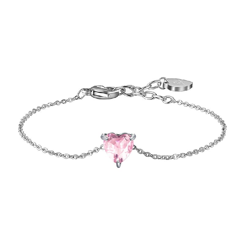 BRACCIALE DONNA IN ACCIAIO CON CUORE CRISTALLO ROSA