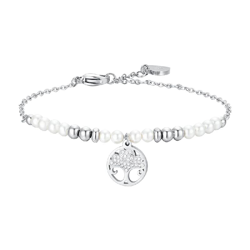 BRACCIALE DONNA IN ACCIAIO CON PERLE E ALBERO DELLA VITA
