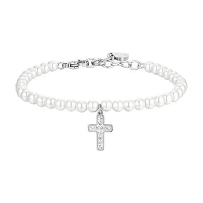 BRACCIALE donna in acciaio perle e croce