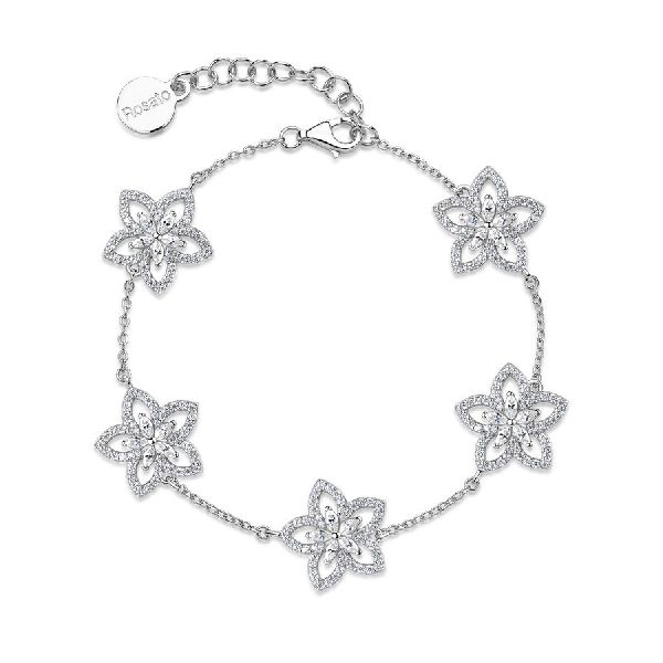 Bracciale morbido in argento 925‰, 275 cubic zirconia bianchi con fiori