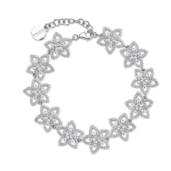 Bracciale morbido in argento 925‰, 605 cubic zirconia bianchi con fiori