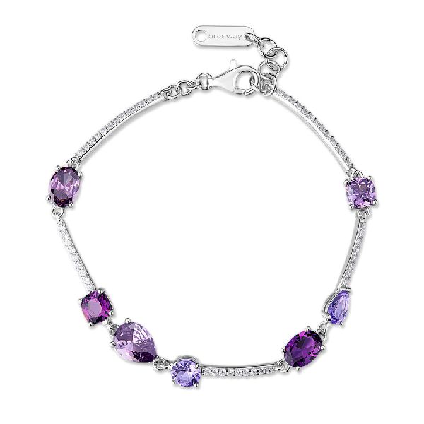 Bracciale semirigido in argento rodiato 925‰ con cubic zirconia chiari e cubic zirconia colore amethyst.