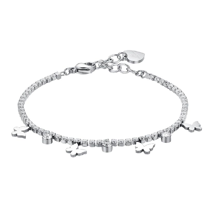 BRACCIALE TENNIS DONNA IN ACCIAIO CON CRISTALLI BIANCHI E FARFALLE