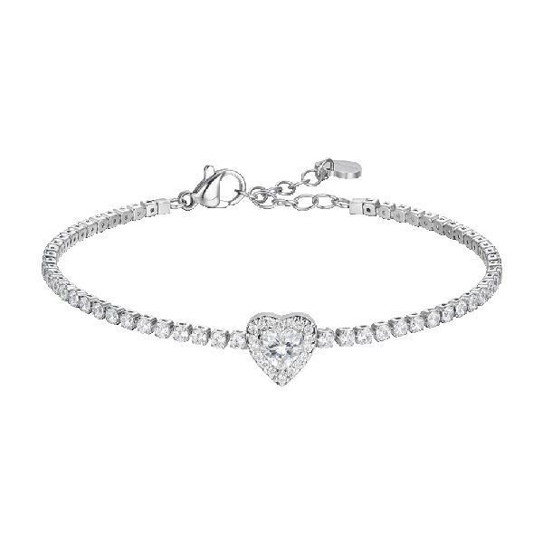 BRACCIALE TENNIS DONNA IN ACCIAIO CON CUORE CON ZIRCONI BIANCHI