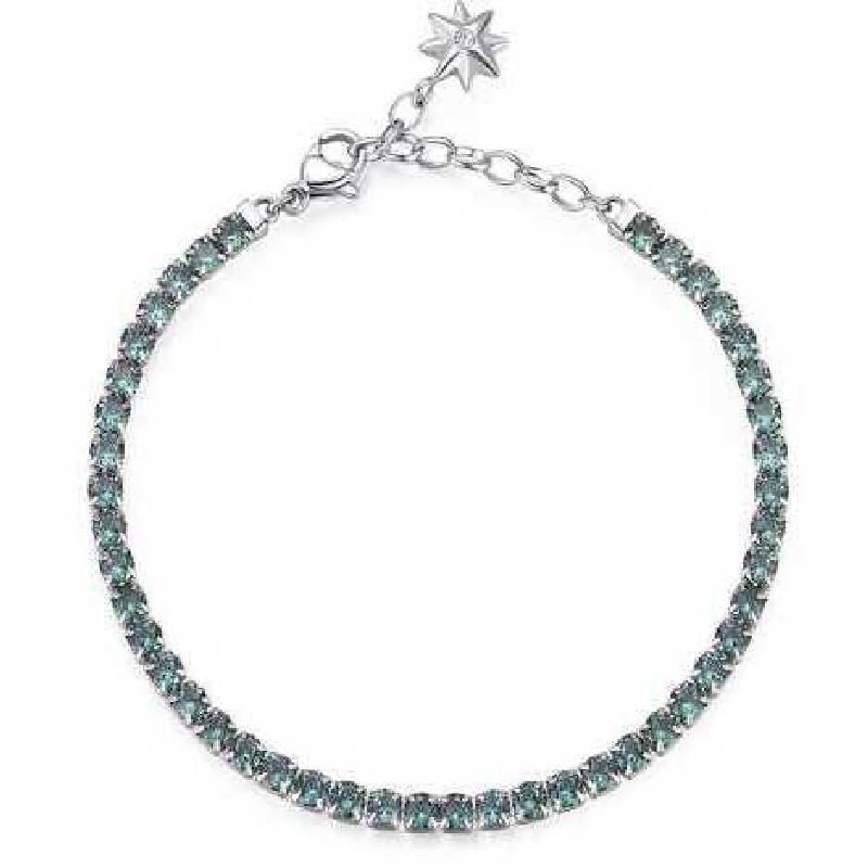 Bracciale tennis in acciaio 304L della collezione Desideri con cubic zirconia spinel green e pendente chiusura a forma di stella.