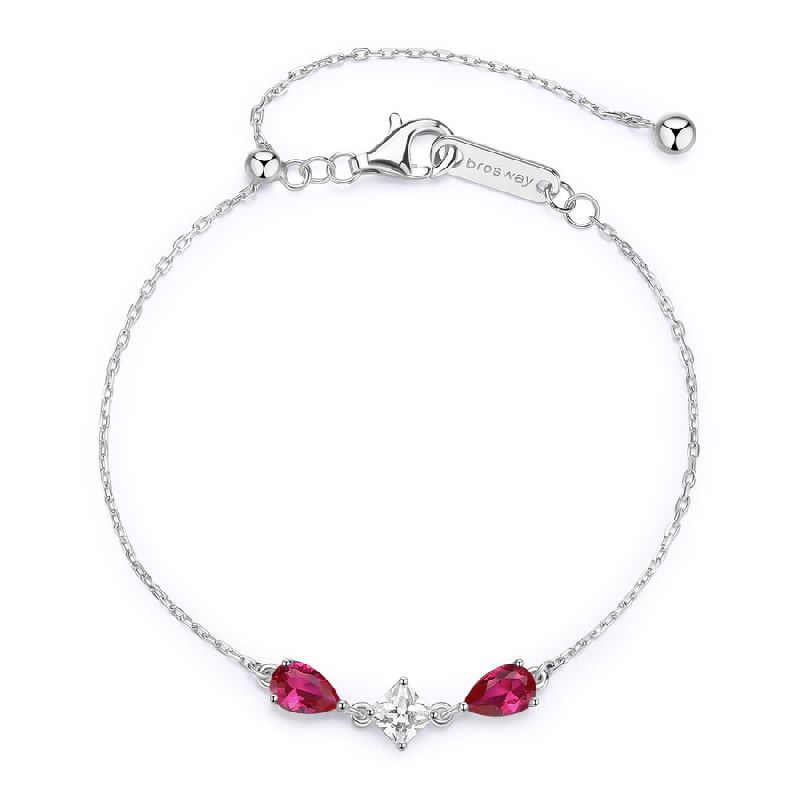 Bracciale tiralaccio in argento rodiato 925‰ con square cubic zirconia e pear cubic zirconia colore ruby.