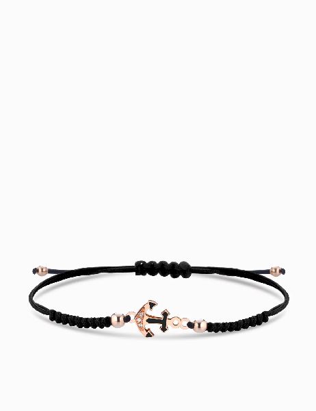 BRACCIALE IN CORDINO IN ORO ROSA 18KT CON SMALTO NERO E DIAMANTI CT.0,02