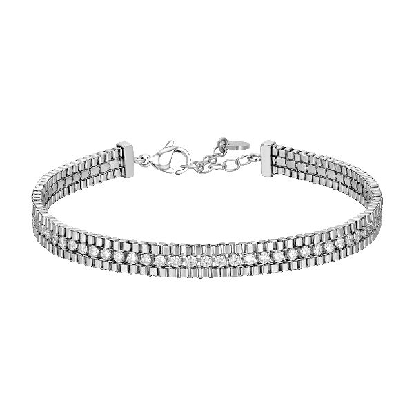 BRACCIALE UOMO IN ACCIAIO E ZIRCONI BIANCHI