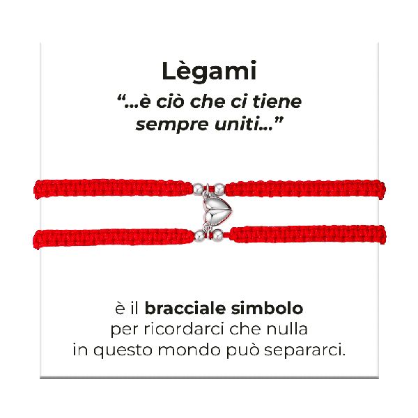 BRACCIALI DONNA E UOMO IN CORDA COREANA ROSSA CON CUORE CALAMITATO