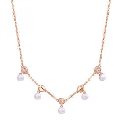 Collana corta in argento 925‰, placcatura oro rosa, 63 cubic zirconia bianchi, 5 perle naturali