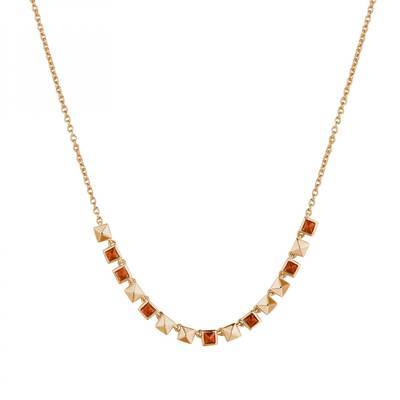 Collana corta in argento 925‰, placcatura oro giallo, 7 cubic zirconia arancione