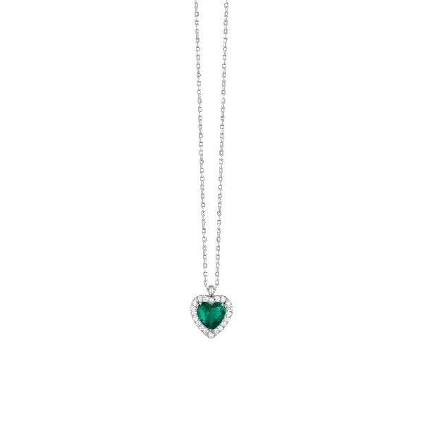 COLLANA DONNA IN ACCIAIO CON CUORE CON ZIRCONI VERDI E BIANCHI