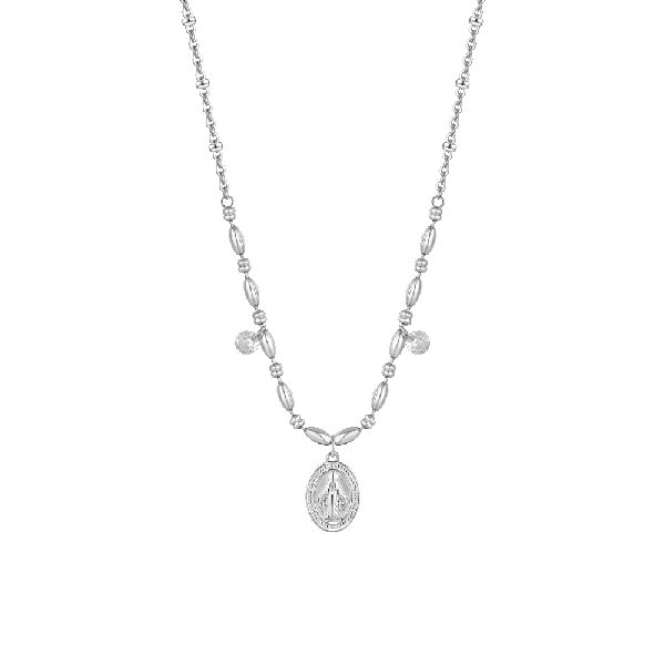 COLLANA DONNA IN ACCIAIO CON MADONNINA MIRACOLOSA E ZIRCONI BIANCHI
