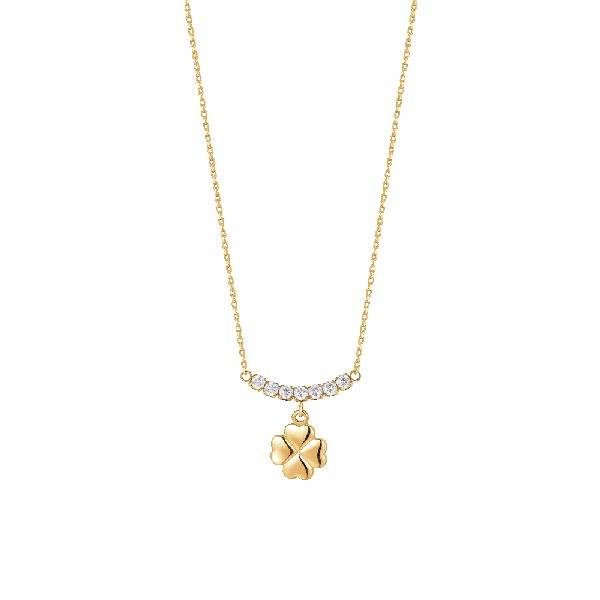COLLANA DONNA IN ACCIAIO IP GOLD CON QUADRIFOGLIO E ZIRCONI BIANCHI