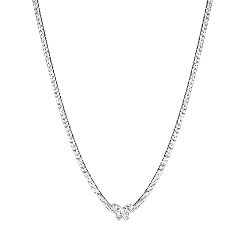 COLLANA DONNA SNAKE IN ACCIAIO CON FARFALLA CON CRISTALLI BIANCHI