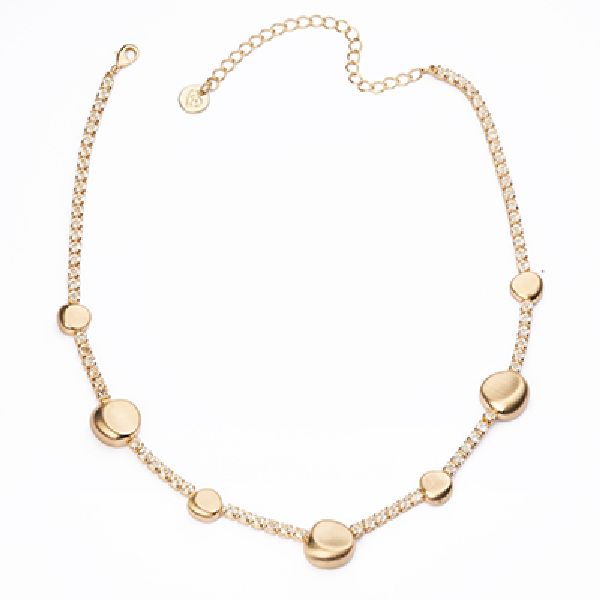 Collana Filo tennis cristallo intervallato da elementi a forma di tondino spazzolati a mano in metallo dorato – misura regolabile