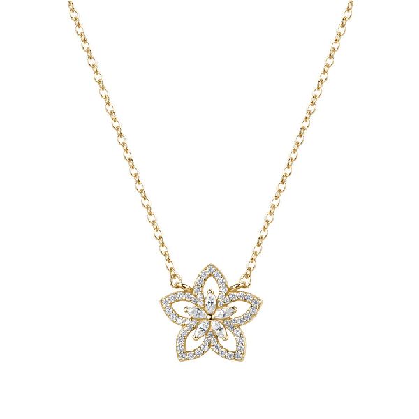 Collana girocollo in argento 925‰ con fiore, placcatura oro giallo e 55 cubic zirconia bianchi