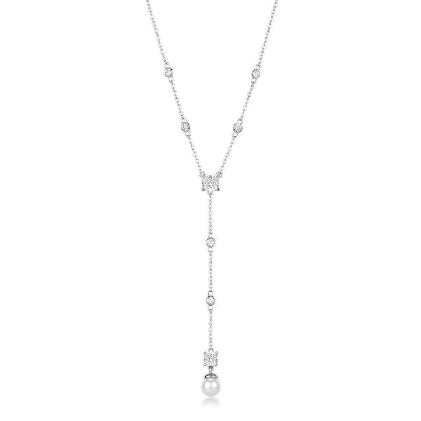 Collana girocollo in argento rodiato 925‰ con perla di conchiglia e cubic zirconia.