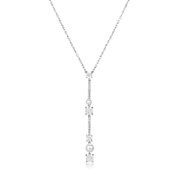 Collana girocollo in argento rodiato 925‰ con perle di conchiglia e cubic zirconia.