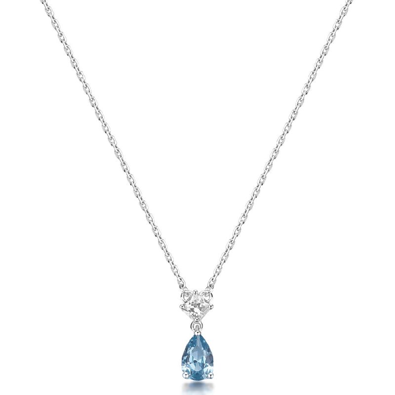 Collana girocollo in argento rodiato 925‰ e pendente con square cubic zirconia e pear cubic zirconia colore light sapphire.