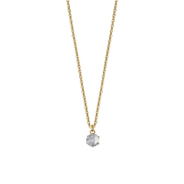 Collana punto luce in acciaio IP gold con zircone bianco Lunghezza: 40 + 5 cm Misura zircone: 5 mm Un accessorio versatile e senza tempo, questa collana in acciaio è il complemento perfetto per ogni outfit, da casual a elegante.