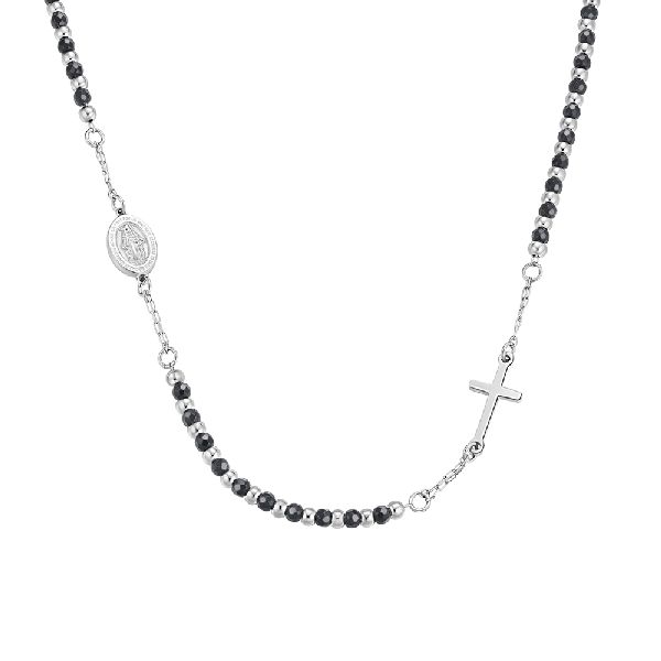 COLLANA ROSARIO UOMO MODELLO GIROCOLLO CON PIETRE EMATITE NERA. MADONNA MIRACOLO
