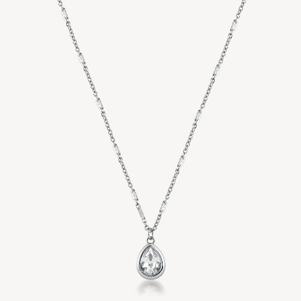 Collana in acciaio 316L con pendente con cristallo a forma di goccia.