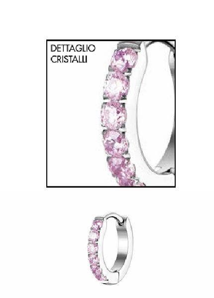 Mono orecchino donna in acciaio con zirconi rosa Diametro: 13 mm