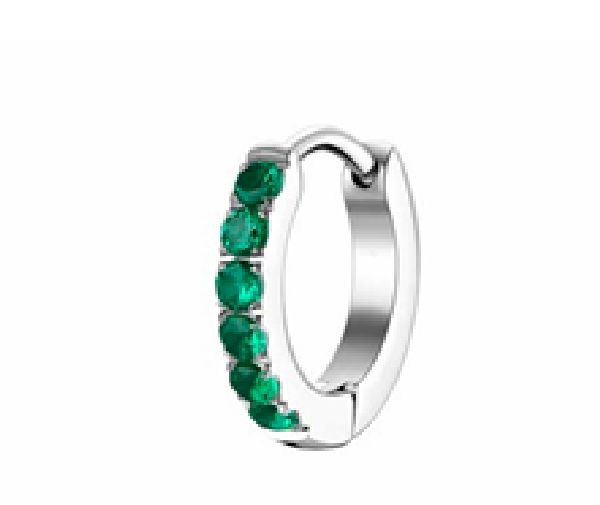 Mono orecchino donna in acciaio con zirconi verdi Diametro: 13 mm