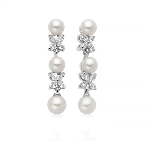4 perle vere Oriente 5-5,5 mm, 2 perle vere Oriente 6-6,5 mm, 16 topazi bianchi naturali taglio goccia 3×2 mm 11,2 ct totali.