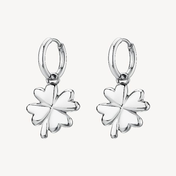 Orecchini pendenti in acciaio 316L con quadrifoglio.