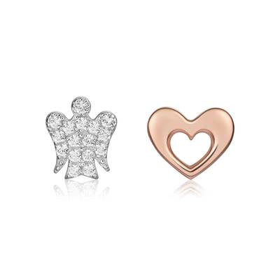 Orecchini Con Angelo pavé e Cuore in argento rosato