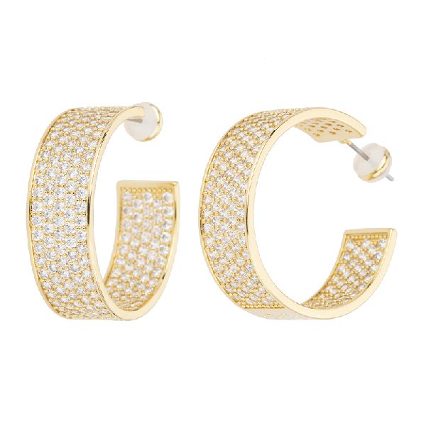 Orecchini creola a fascia larga in metallo dorato con pavè di zirconi clear