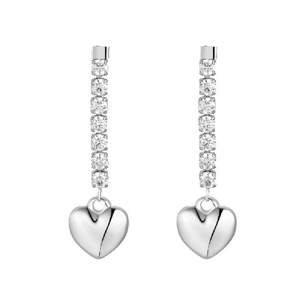 ORECCHINI DONNA IN ACCIAIO CON CUORE E ZIRCONI BIANCHI