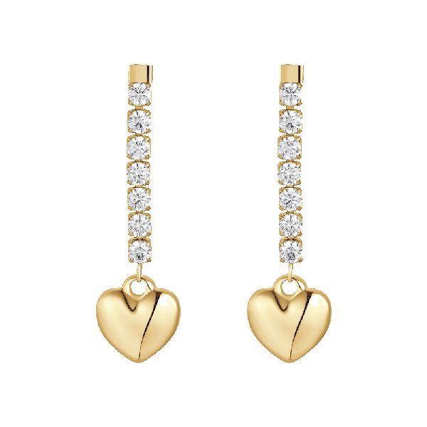 ORECCHINI DONNA IN ACCIAIO IP GOLD CON CUORE E ZIRCONI BIANCHI