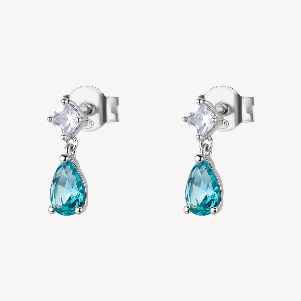 Orecchini pendenti in argento rodiato 925‰ con pear cubic zirconia white e colore paraiba.
