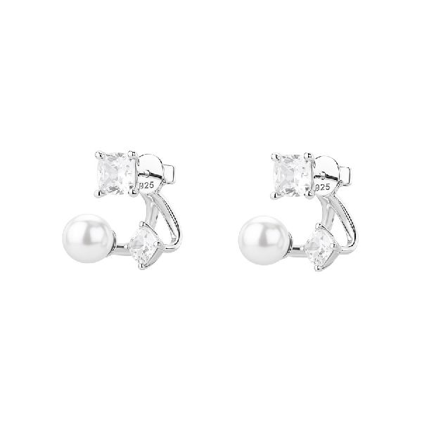 Orecchini in argento rodiato 925‰ con perle di conchiglia e cubic zirconia.