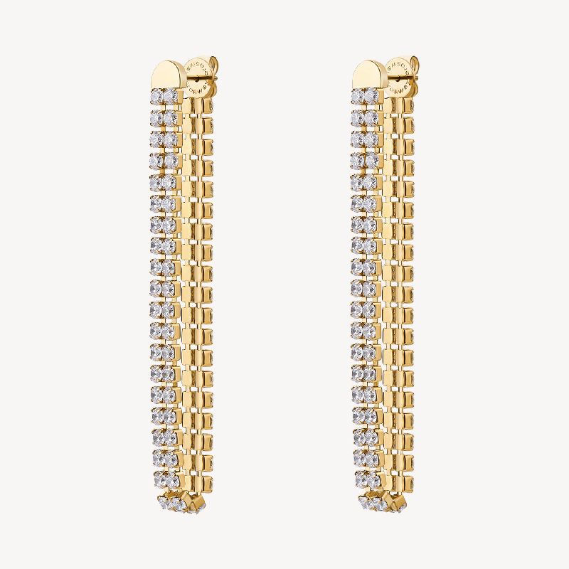 Orecchini pendenti in acciaio 316L, finitura pvd oro 14K e cubic zirconia.