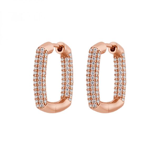 Orecchini quadrati in argento 925‰, placcatura oro rosa, 176 cubic zirconia bianchi