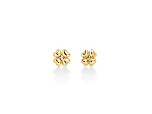 Orecchini Quadrifoglio in oro giallo 9kt e impreziosito da diamanti bianchi da 0,006 ct