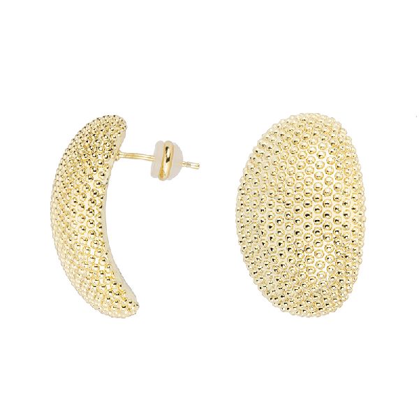 Orecchini top ovale in metallo dorato con texture in rilievo a micro borchie
