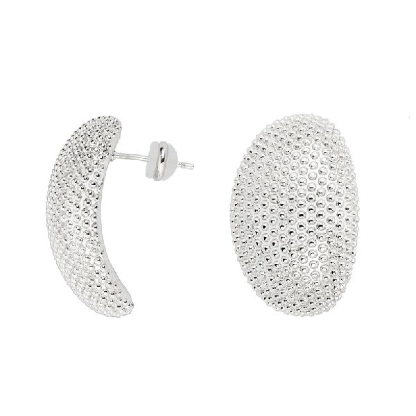 Orecchini top ovale in metallo rodiato con texture in rilievo a micro borchie
