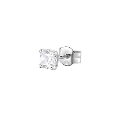 Orecchino singolo a lobo in argento rodiato 925‰ con cushion cubic zirconia.